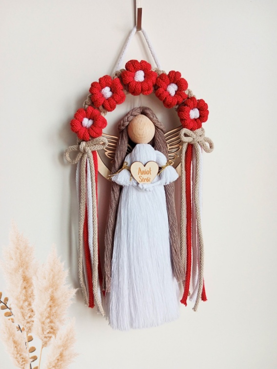 Zawieszony w oknie, ścianie w salonie, sypialni, korytarzu czy w kuchni – będzie nie tylko dekoracją, ale też symbolem opieki, spokoju i dobrych intencji. Wykonany z naturalnych materiałów – sznurków i drewna.