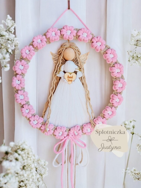 • Anioł Stróż, Pamiątka I Komunii/ Chrztu, pastelowy róż