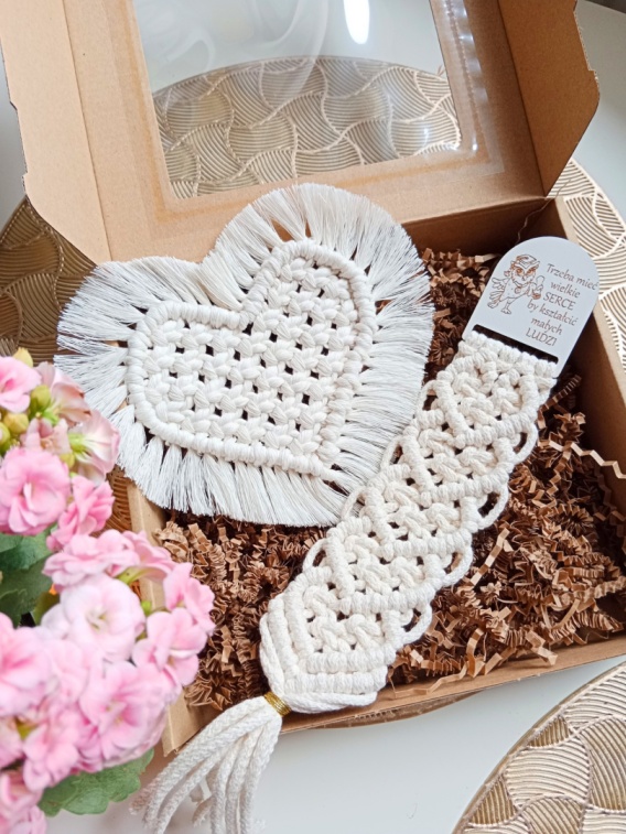 Szukasz idealnego podarunku dla swojego nauczyciela? Nasz box prezentowy to doskonały wybór! Zawiera on uroczą podkładkę w kształcie serca oraz elegancką zakładkę do książki, obie w stonowanym kolorze scru. To niezwykle praktyczny zestaw, który ucieszy każdego pedagoga i sprawi mu wiele radości.