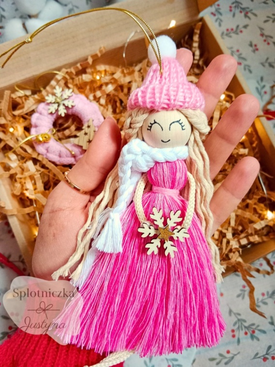 Oto zestaw, który sprawi uśmiech na jej twarzy - Świąteczny prezent z uroczą laleczką i różową bombką. Ozdobiony złotymi zawieszkami dodaje mu elegancji. Zestaw jest zapakowany w piękne ozdobne pudełko z szybką i przewiązany dekoracyjną wstążką, gotowy do wręczenia bliskiej osobie.