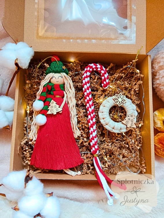 Zestaw jest starannie zapakowany w ozdobne pudełko o wymiarach 20x20 cm, przewiązane ozdobnym sznurkiem, gotowe do wręczenia jako wyjątkowy prezent dla bliskiej osoby. Nie tylko pięknie udekoruje wnętrze domu podczas Bożego Narodzenia, ale także wniesie do niego nutkę magii i ciepła.